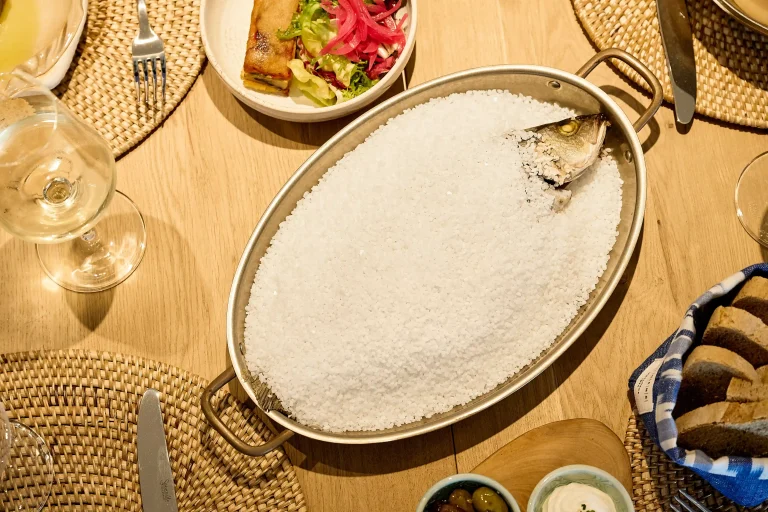 Salt, an essential part of our identity, plays a central role in the kitchen. It doesnβt just enhance the flavorβit connects us with our local heritage. A perfect example is our sea bass baked in Es Trenc saltβa must-try.